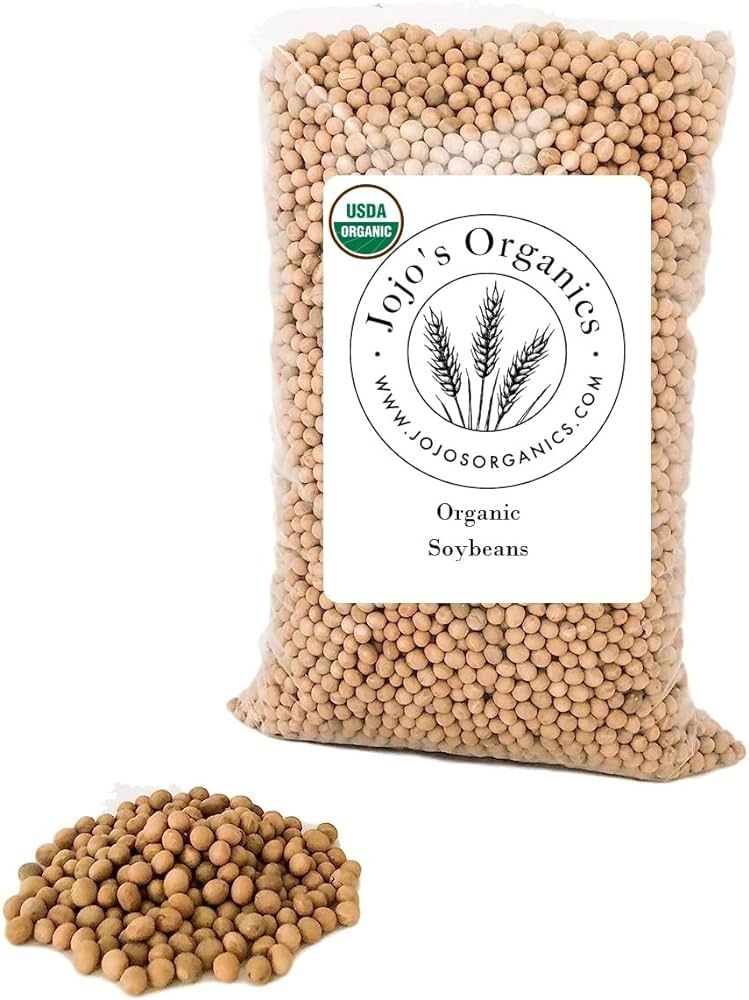 Jojo’s Organics Non-GMO Soybeans 5 lbs Whole Soy Beans Bulk Food Dry Legumes Beans Vegan Great for Soy Milk Soy Protein Soy Flour and Tofu 100% Product of USA